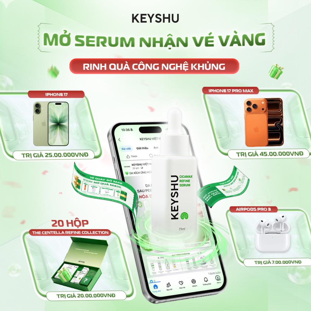MỞ SERUM NHẬN MÃ SỐ VÀNG, KHUI QUÀ CÔNG NGHỆ CỰC KHỦNG Với mỗi đơn hàng có từ 01 tinh chất phục hồi Cicamax Refine Serum, khách hàng sẽ nhận ngay 01 Vé Quay Số May Mắn với cơ hội trúng iPhone 17Pro Max. Hàng loạt giải thưởng công nghệ hot hit nhất 2025 thuộc…
