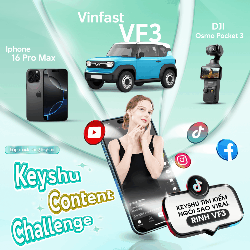 Chỉ cần một video đắp mặt nạ & review thật “sáng tạo”, bạn hoàn toàn có thể là chủ nhân của những quà tặng dưới đây: 🏆Top 1 – Ngôi sao Viral Keyshu: 01 xe Vinfast VF3 🥈Top 2 – Bùng nổ Keyshu: 01 chiếc iPhone 16 Pro Max 🥉Top 3 – Sáng tạo Keyshu:…