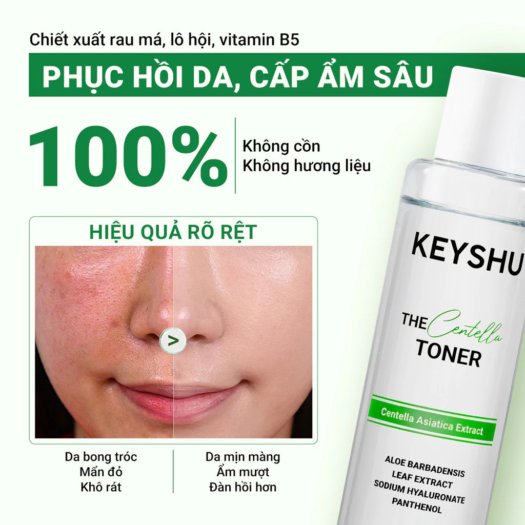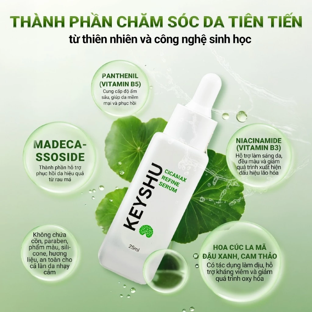 Hệ lười – Chọn combo Toner rau má + Cicamax Refine Serum Keyshu để cấp ẩm da nhanh gọn