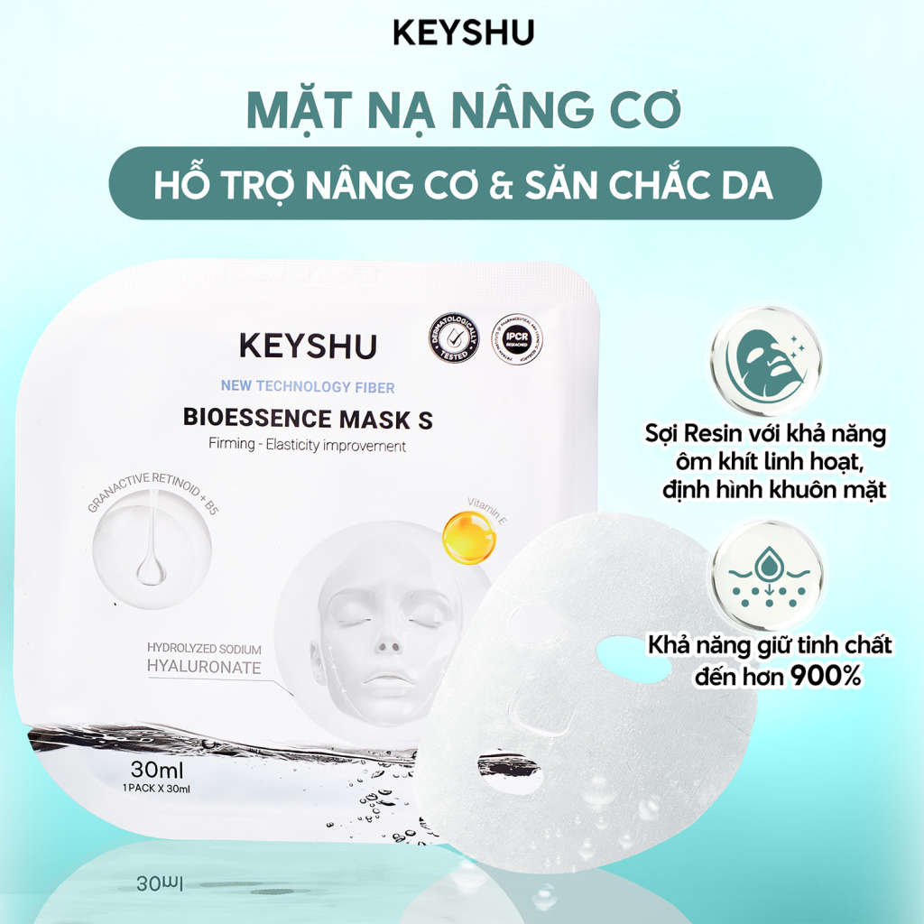 Chứng nhận Dermatology Test: Được thực hiện bởi các chuyên gia da liễu, sản phẩm trải qua quá trình kiểm nghiệm nghiêm ngặt trên làn da của nhiều tình nguyện viên. Kết quả lâm sàng cho thấy, mặt nạ Keyshu không gây kích ứng và hoàn toàn an toàn, lành tính cho cả làn da nhạy cảm nhất.