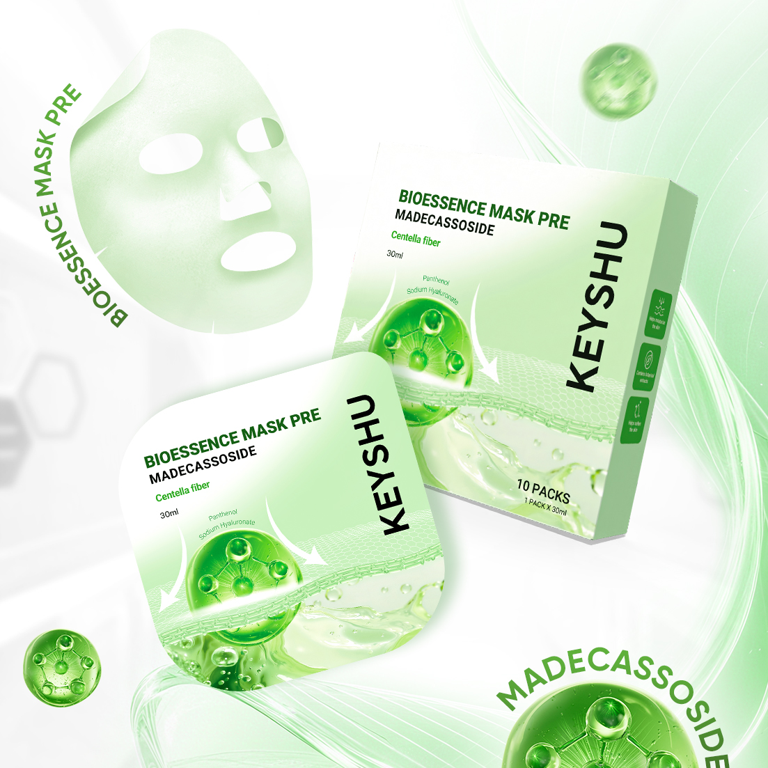 Nếu bạn đang tìm kiếm dòng mặt nạ chăm sóc làn da toàn diện có thể làm dịu, phục hồi, dưỡng ẩm, giảm thâm, dưỡng sáng và hỗ trợ nâng cơ, ngăn ngừa lão hoá, mặt nạ Keyshu chính là câu trả lời hoàn hảo. Với công thức độc bản kết hợp chiết xuất thiên nhiên với phôi sợi thực vật, bộ sưu tập này hứa hẹn mang đến diện mạo căng bóng, mịn màng và tràn đầy sức sống sau mỗi lần sử dụng.