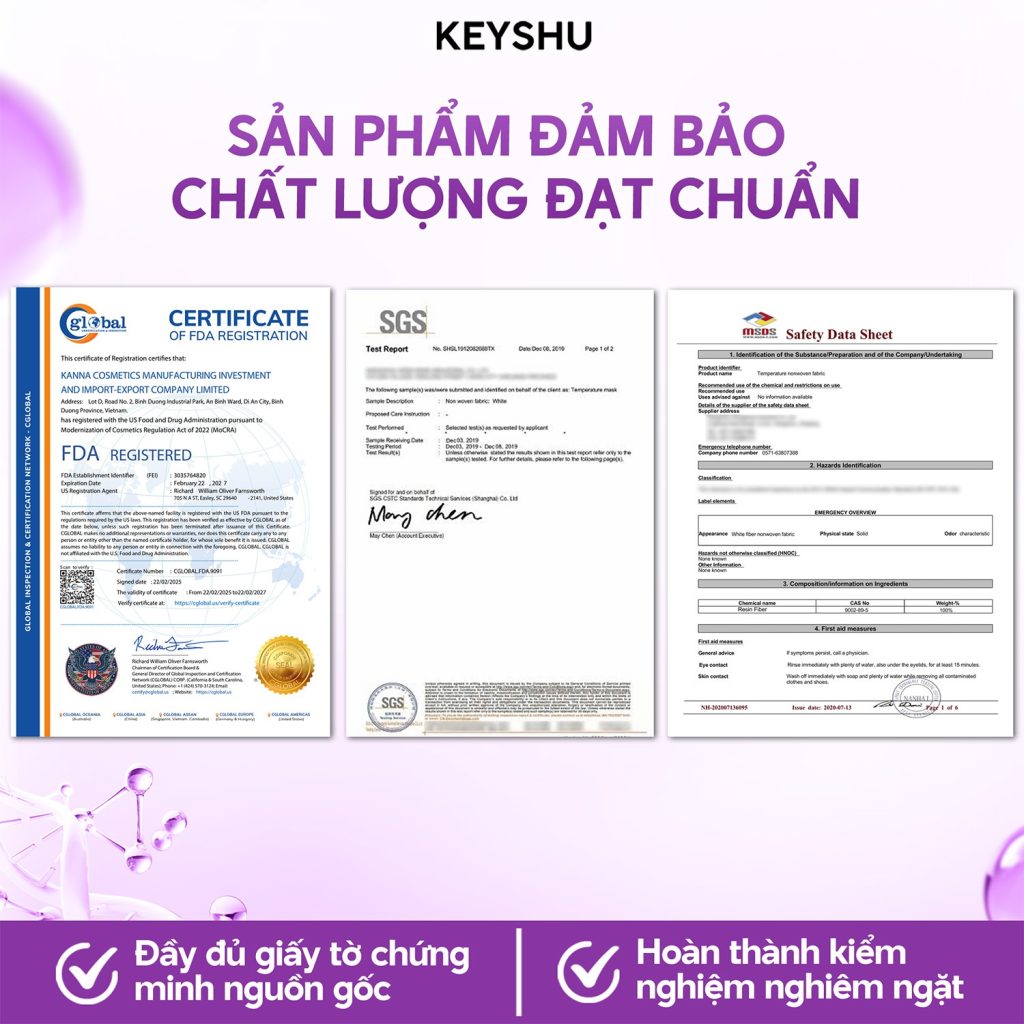Keyshu luôn tin rằng mỗi làn da đều xứng đáng được chăm sóc bằng sự thấu hiểu tận cùng. Dòng mặt nạ hành tím ra đời như một minh chứng cho nỗ lực của thương hiệu trong việc lắng nghe và cải thiện những giải pháp phục hồi sắc tố da. Không chỉ chú trọng vào thành phần hoạt chất, Keyshu còn tiên phong trong việc nghiên cứu chất liệu phôi của mặt nạ, giúp quá trình chăm sóc da không chỉ hiệu quả mà còn mang lại trải nghiệm thư giãn tối đa. Đặc biệt, sản phẩm đã vượt qua những kiểm định khắt khe và nhận được nhiều chứng nhận đạt chuẩn quốc tế như Dermatology Test từ Ellead Korea và Quatest 3, bảo chứng cho sự an toàn và uy tín của một thương hiệu Việt.