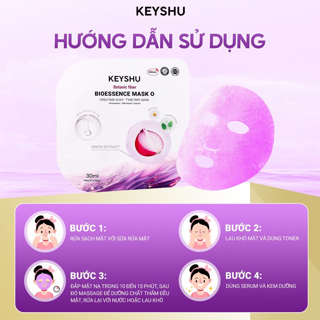 Mặt nạ hành tím Keyshu được thiết kế chuyên biệt cho những tình trạng da đang gặp vấn đề về sắc tố và cần phục hồi: