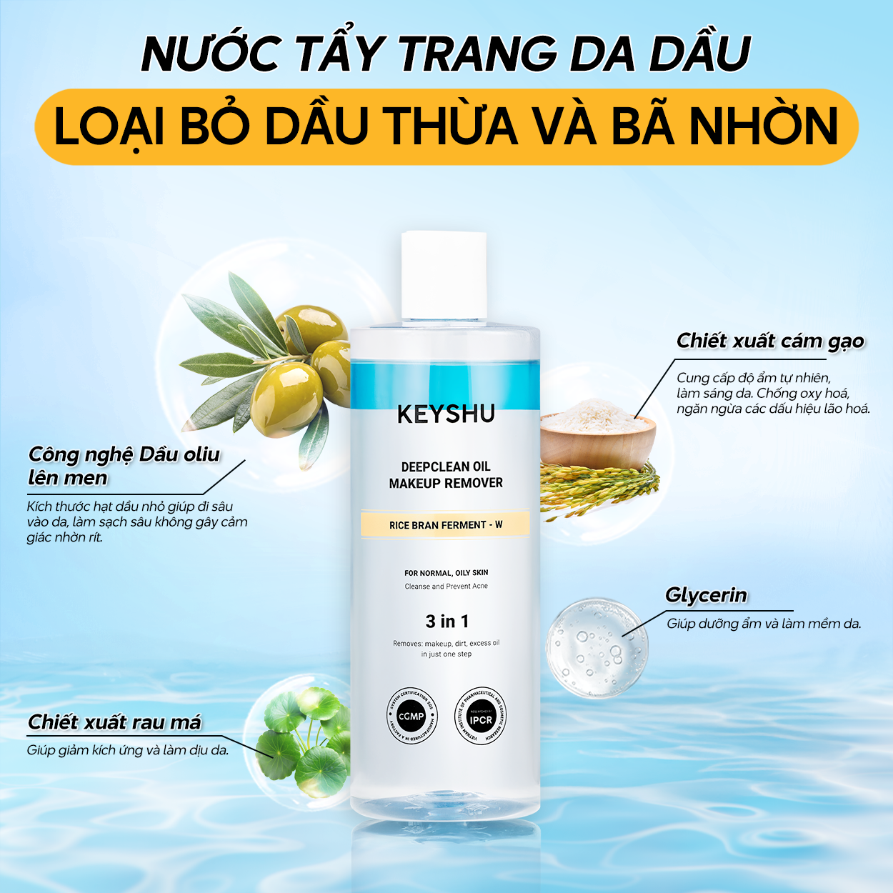 Nước Tẩy Trang Deepclean Oil Makeup Remover KEYSHU Phù Hợp Cho Da Dầu Và Da Thường 400ml